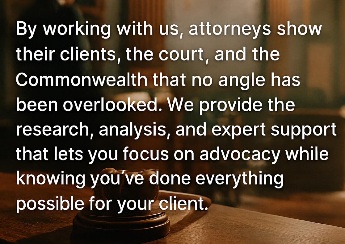 As approved vendors for the Committee for Public Counsel Services (CPCS), our services are available to indigent defense cases through the Indigent Court Cost Act.Attorneys can request our support by filing a Motion for Funds. Once approved, we provide services without any additional charges to attorneys or clients.